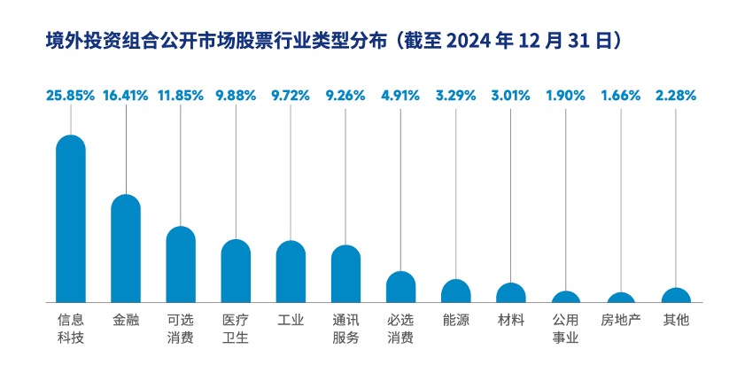 境外投资组合公开市场股票行业类型分布(截至2024年12月31日) 图示来源:中投公司年报