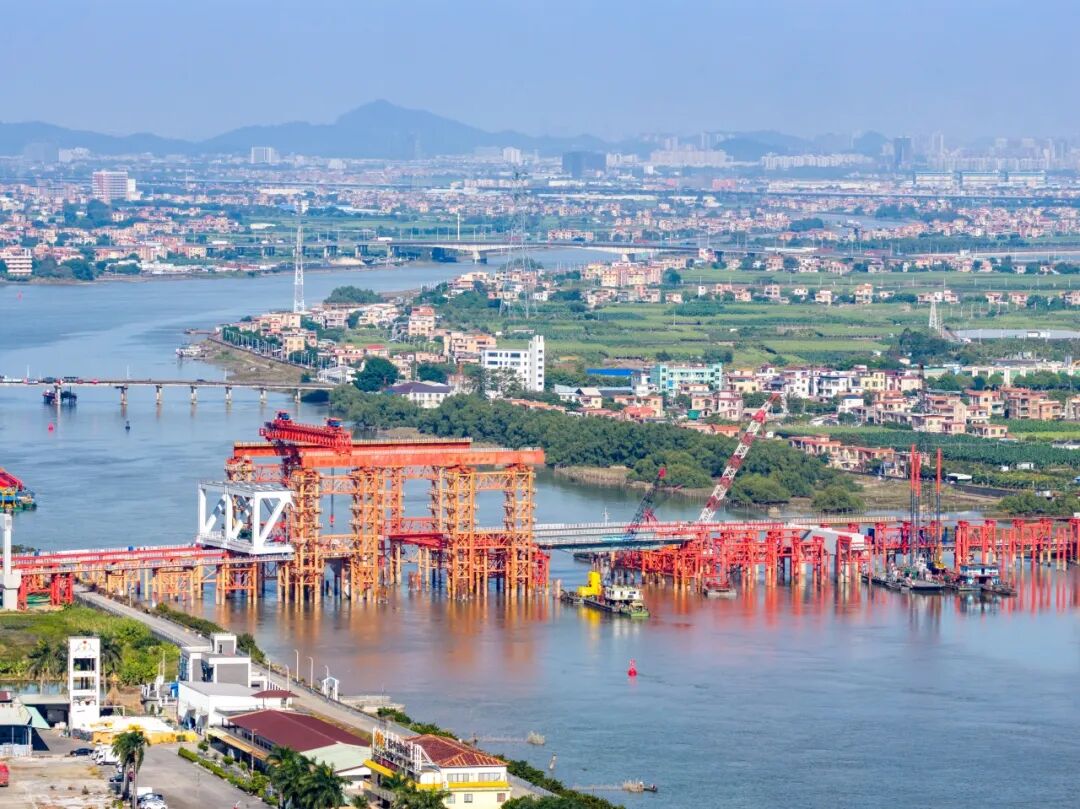近日,狮子洋通道新沙高架桥完成全线首节段双层钢桁梁顶推宁波实盘股票配资app,标志着项目引线工程进入双层钢桁梁施工新阶段。