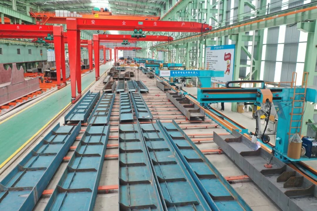 ▲集成多套智能焊接机器设备的钢桁梁制造基地